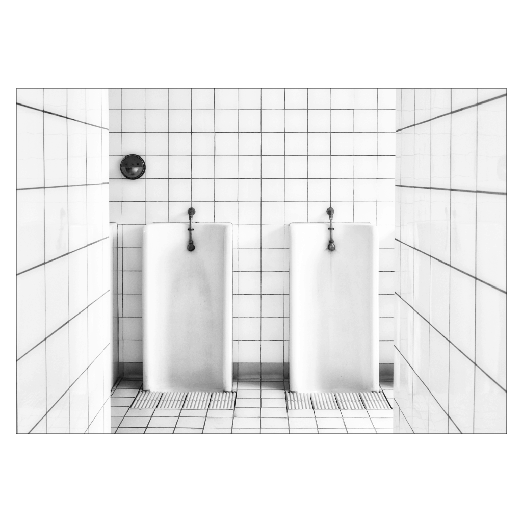 As an architect, I have a certain interest in interesting and beautiful spaces, and those categories this public toilet falls into. A completely classic 40th design, with the original porcelain urinals, and white square glazed tiles on the walls. The round metal ashtray hanging in the picture is from another time when smoking in public space was completely normal. Today, of course, smoking is not allowed in this toilet - which is excellent. Now the ashtray, wall tiles and the classic urinals have ended up on a nice poster.