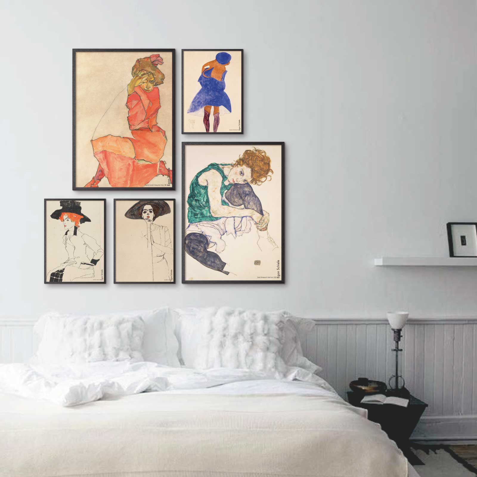 "Kneeling Female in Orange Red Dress" is nothing less than an übercool poster, drawn by the great Austrian master, Egon Schiele.