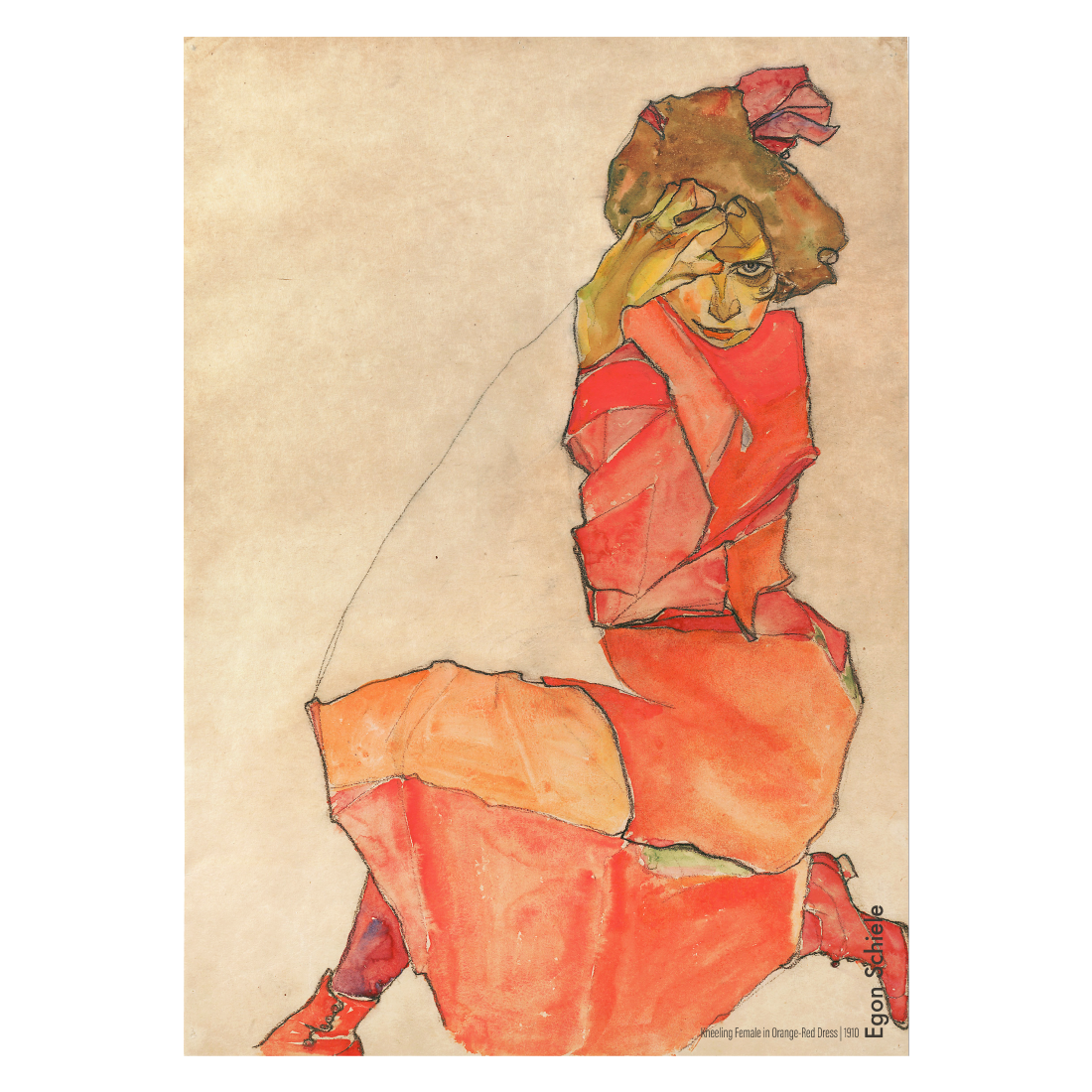 Egon Schiele "Kneeling Female in Orange Red Dress"