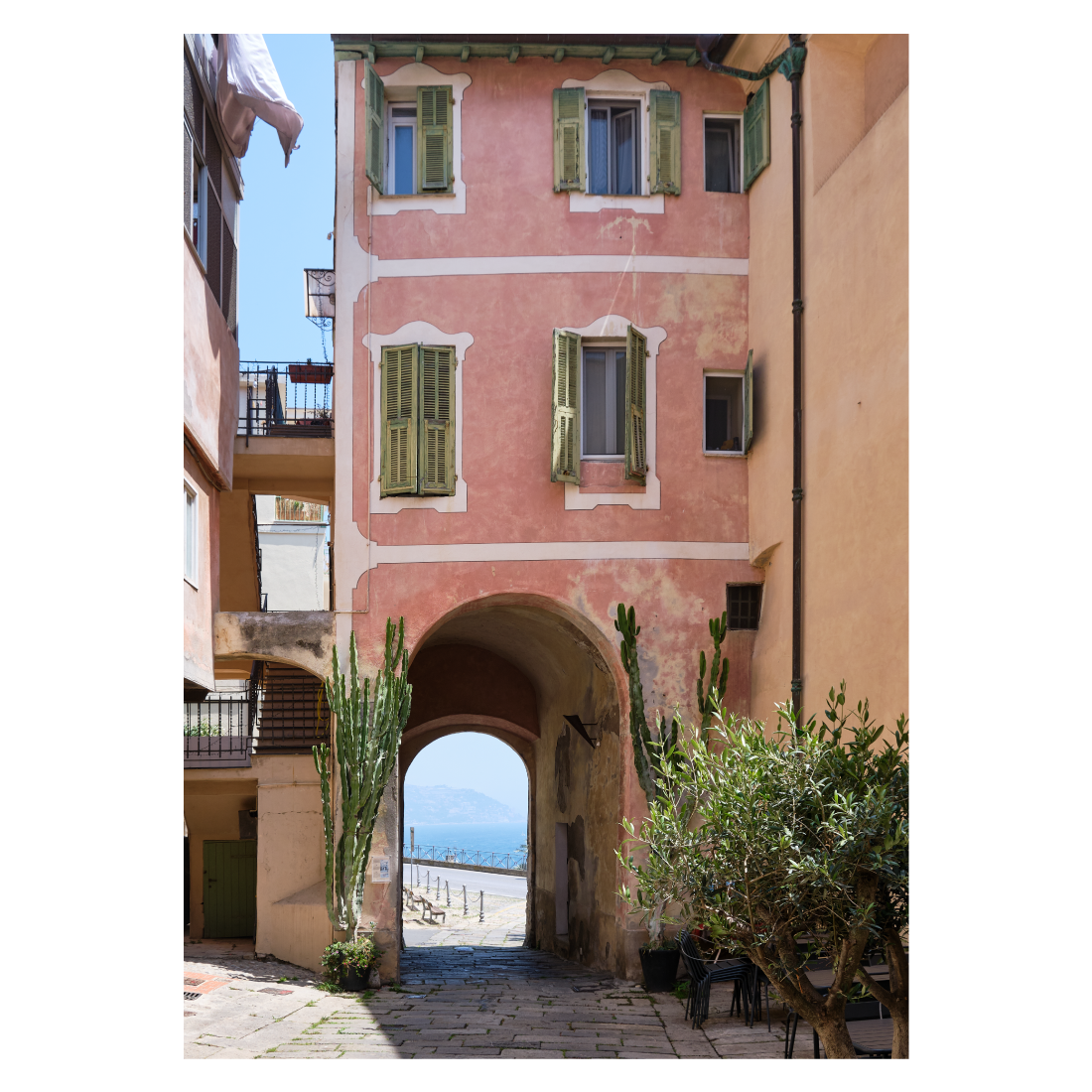 We have a small apartment in the beautiful Italian town of Ospedaletti, close to Sanremo on the north coast. From here we can look over to Bordighera Città Alta, which lies on some of the last meters before the Alps end in the Mediterranean. Once in a while we drive over and take a walk up and down the steep narrow streets, between the typical town houses. And when we look out through the beautiful gate, we can see home to ourselves 😁
