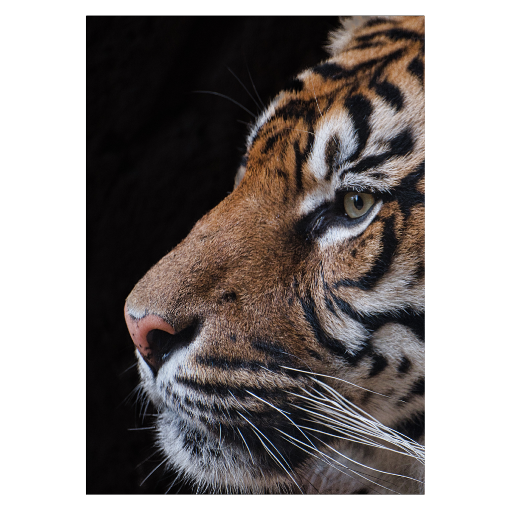 Cool tiger poster with a dramatic close-up of a hunter's head. Here you get an elegant animal poster with one of the most mythical predators. Photo taken in Sydney