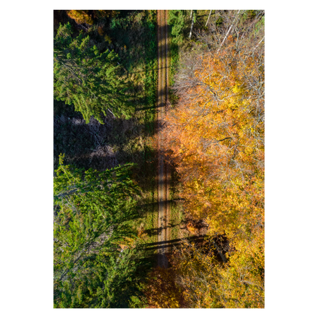 Kanske hade du en känsla, men så här ser skogen ut när du går runt den, när du flyger 100 meter ovanför den. När du dessutom gör det i oktober, när färgerna har gått helt amok, får du en affisch med ett helt överdådigt motiv.